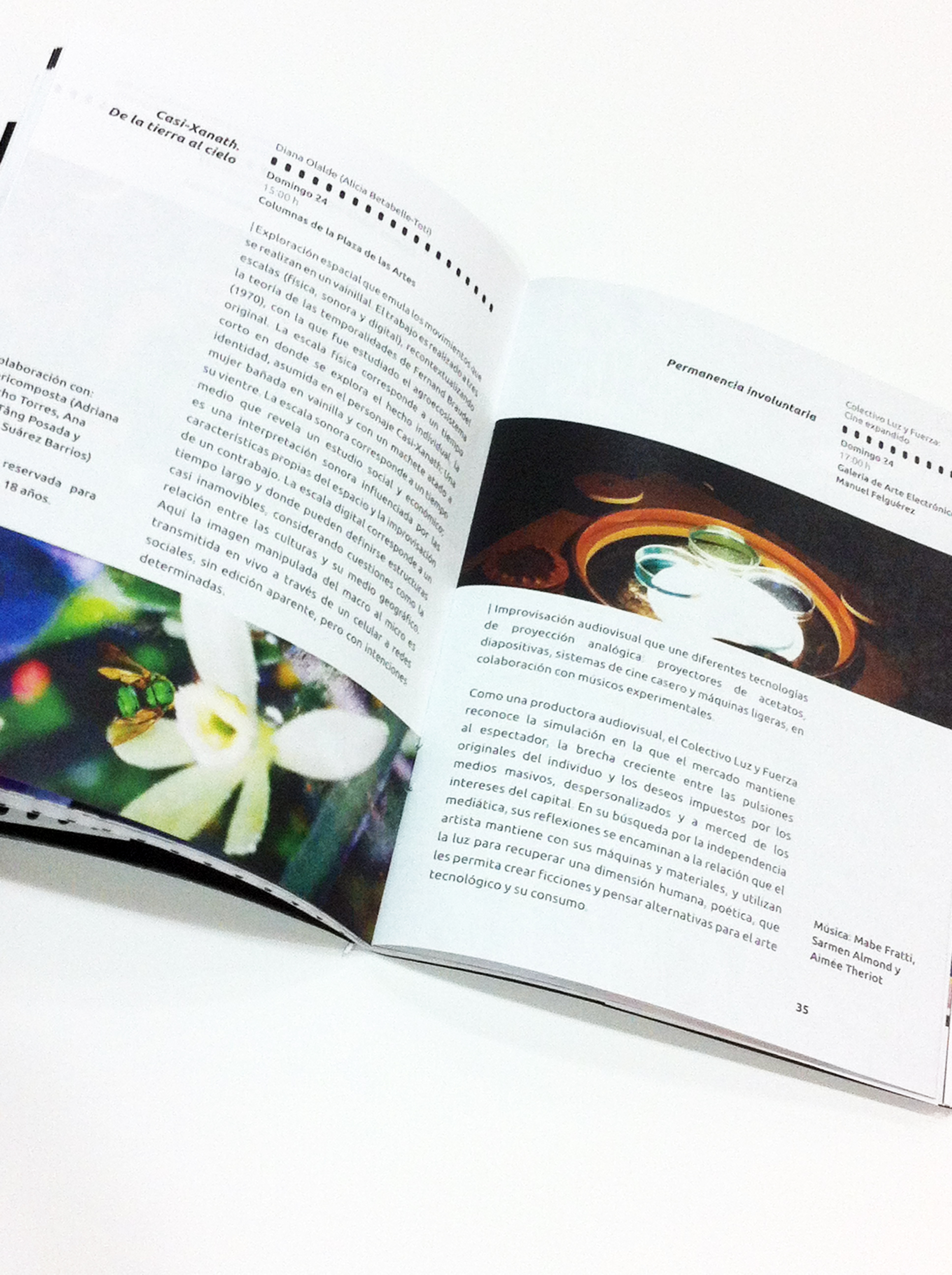 A continuación encontramos el diseño del cuadernillo de sala, engrapado a caballo e impreso en papel bond a full color.