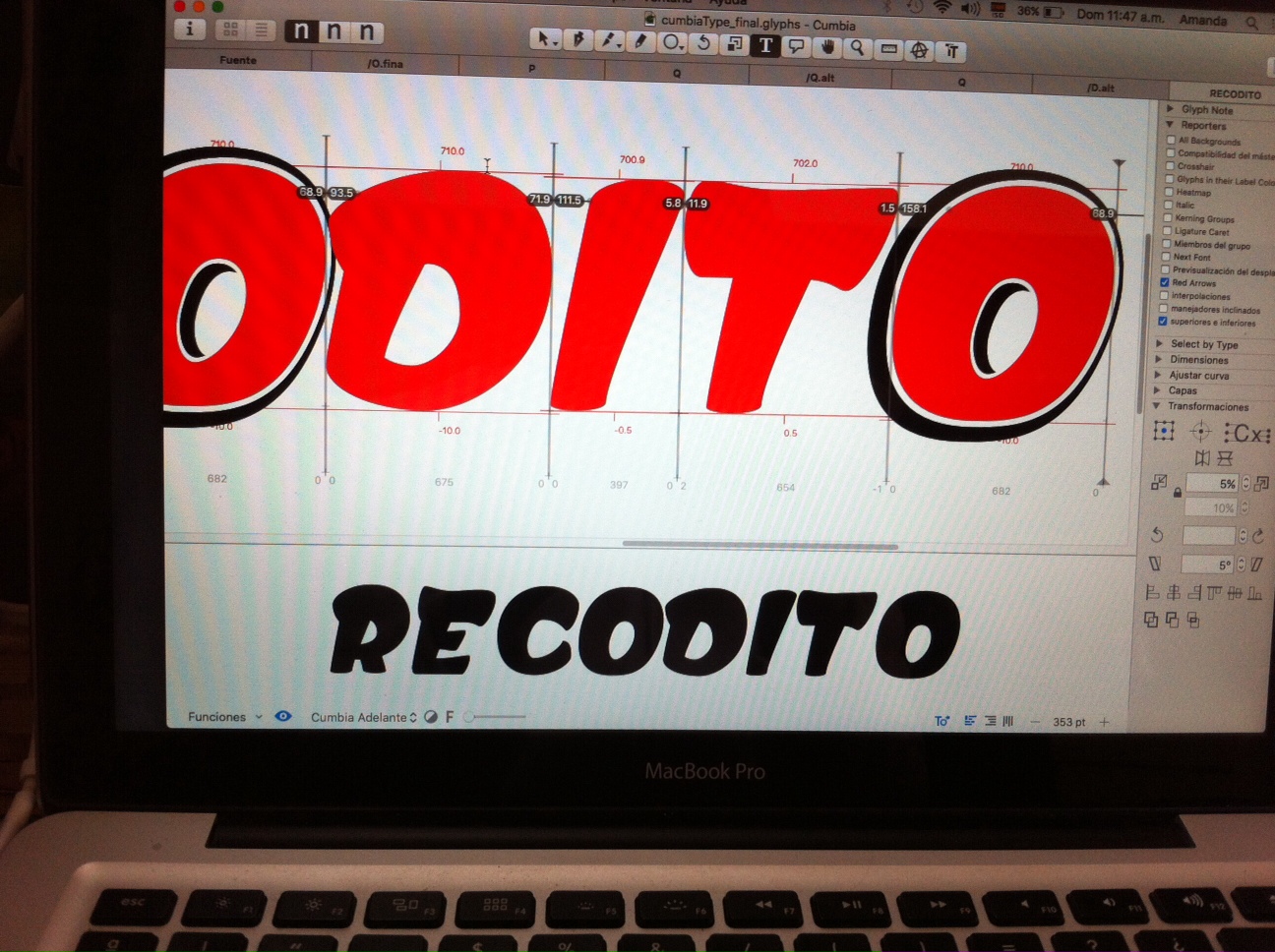 TipoCumbia es una tipografía multilayer, realizada en tres capas.