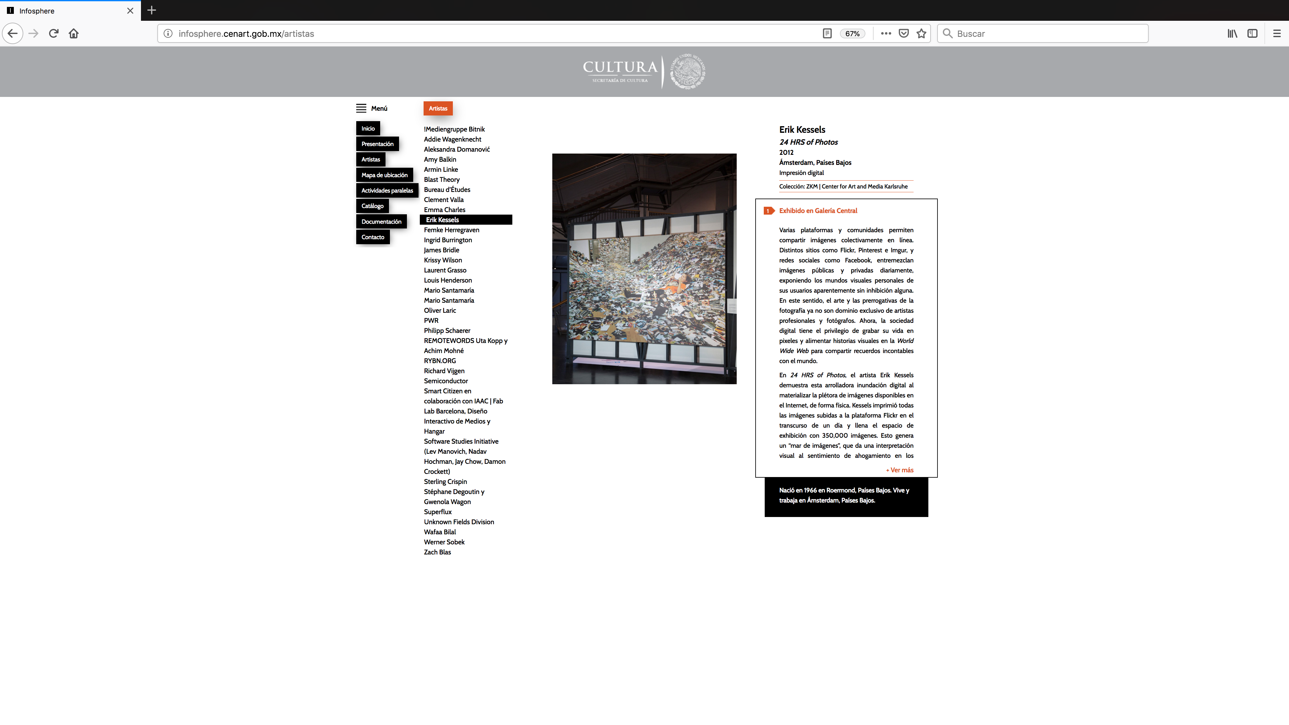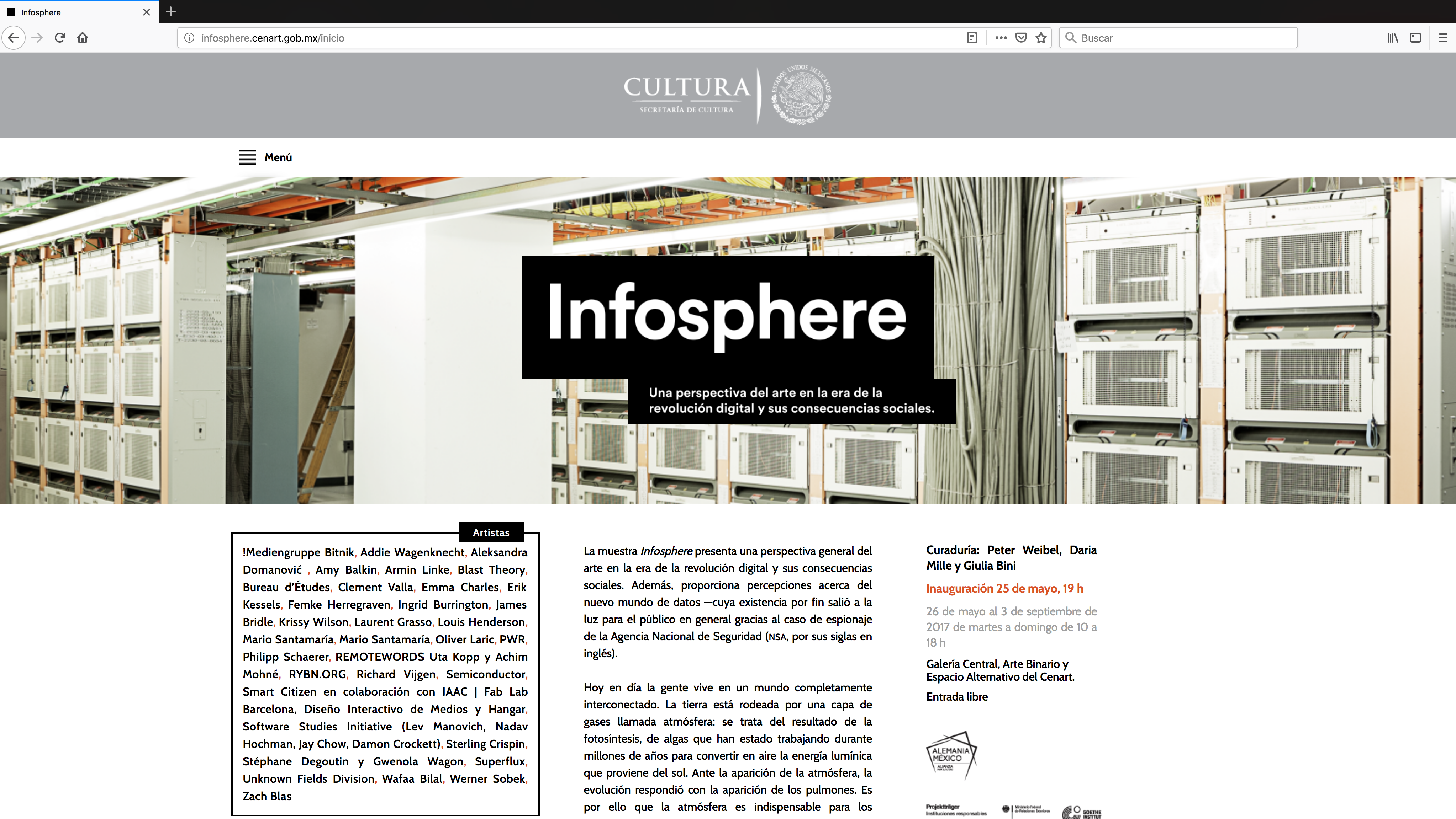 Es posible visitar el sitio en: http://infosphere.cenart.gob.mx